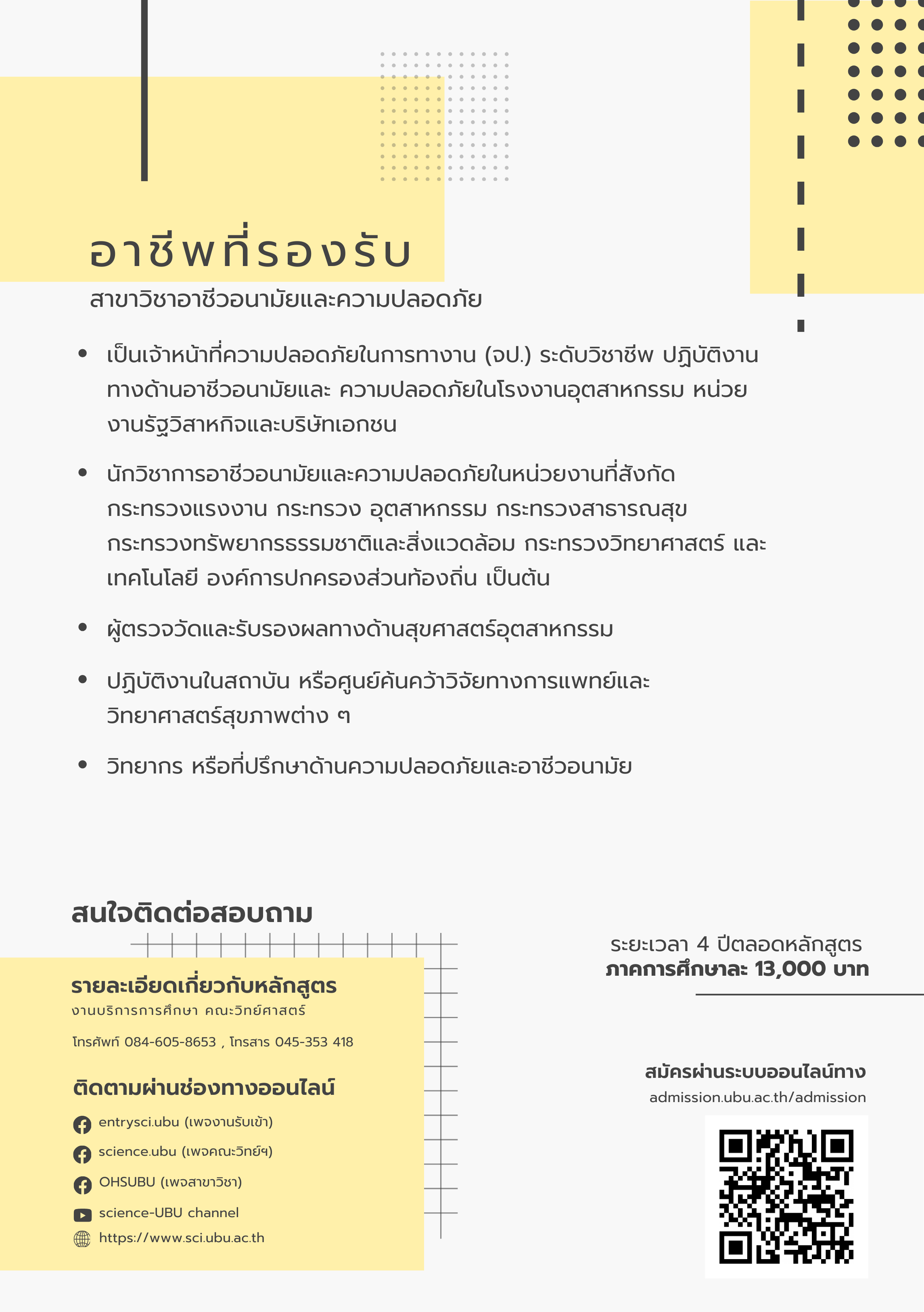 วิทยาศาสตรบัณฑิต สาขาวิชาอาชีวอนามัยและความปลอดภัย